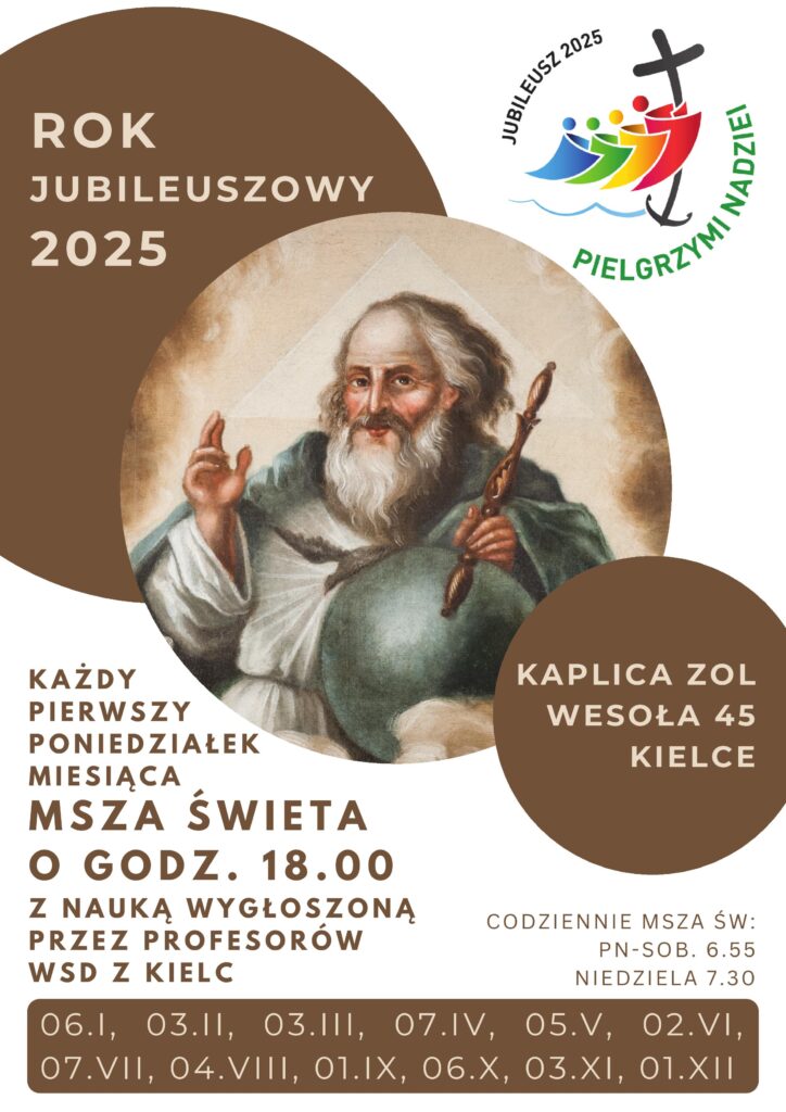 w ROKU JUBILEUSZOWYM 2025 w pierwszy poniedziałek miesiąca – godz. 6.55 oraz 18.00